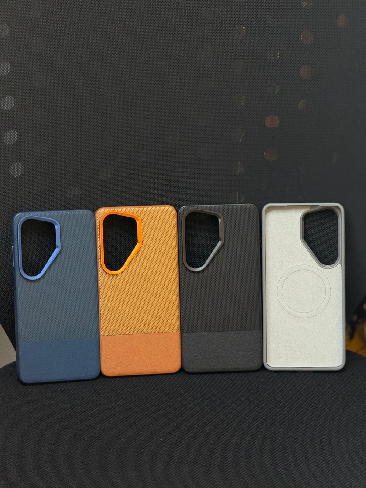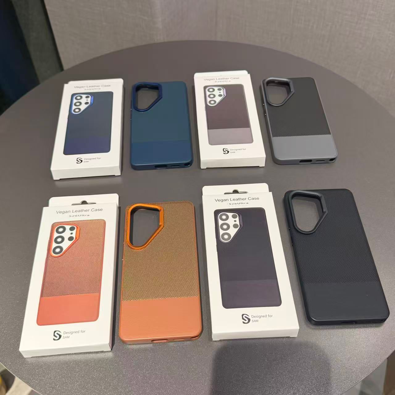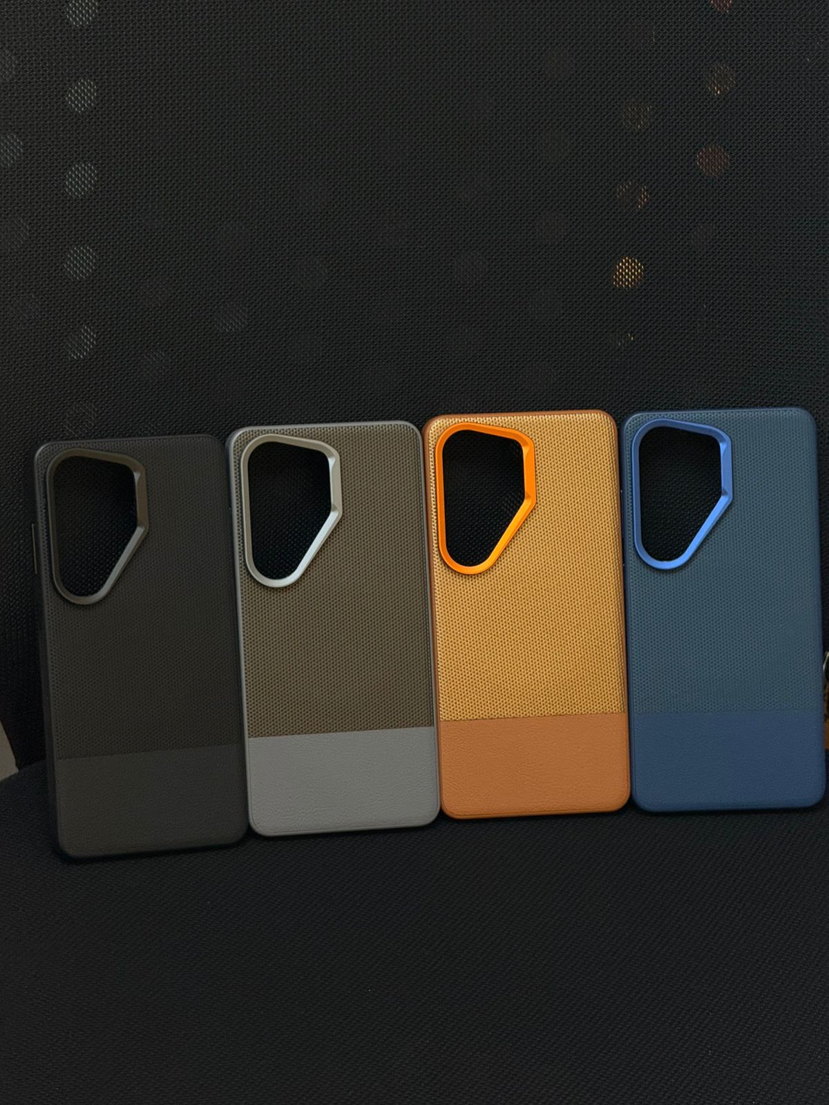 The vegan leather Samsung case is designed for those who want their phone to look as sharp as they do. Featuring a dual-material build—textured nylon weave on top and smooth vegan leather on the bottom—with a precision color-matched metal camera ring that ties the whole look together.